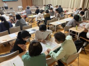 会場には地域住民の方々が数十名着席し、金沢市周辺のハザード情報を交えながら、在宅避難の意義や備えの方法、そして高齢者やペットとの関わりについて熱心に聞いてくださいました。