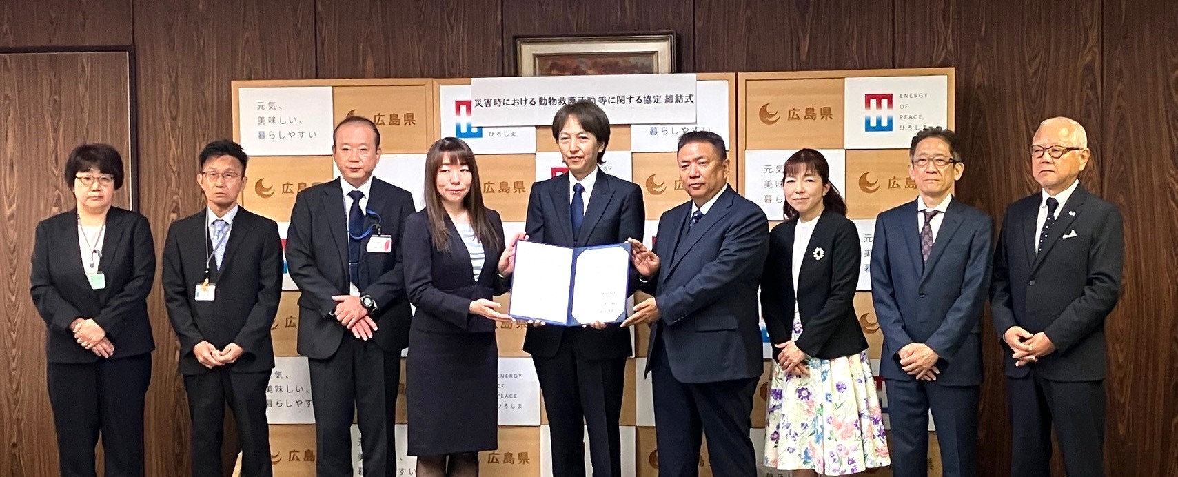 SAEと特定非営利活動法人ペット災害危機管理士会が、広島県と「災害時における動物救護活動等に関する協定」を締結し、その締結式を広島県庁において2025年10月23日(木)に執り行いました。
